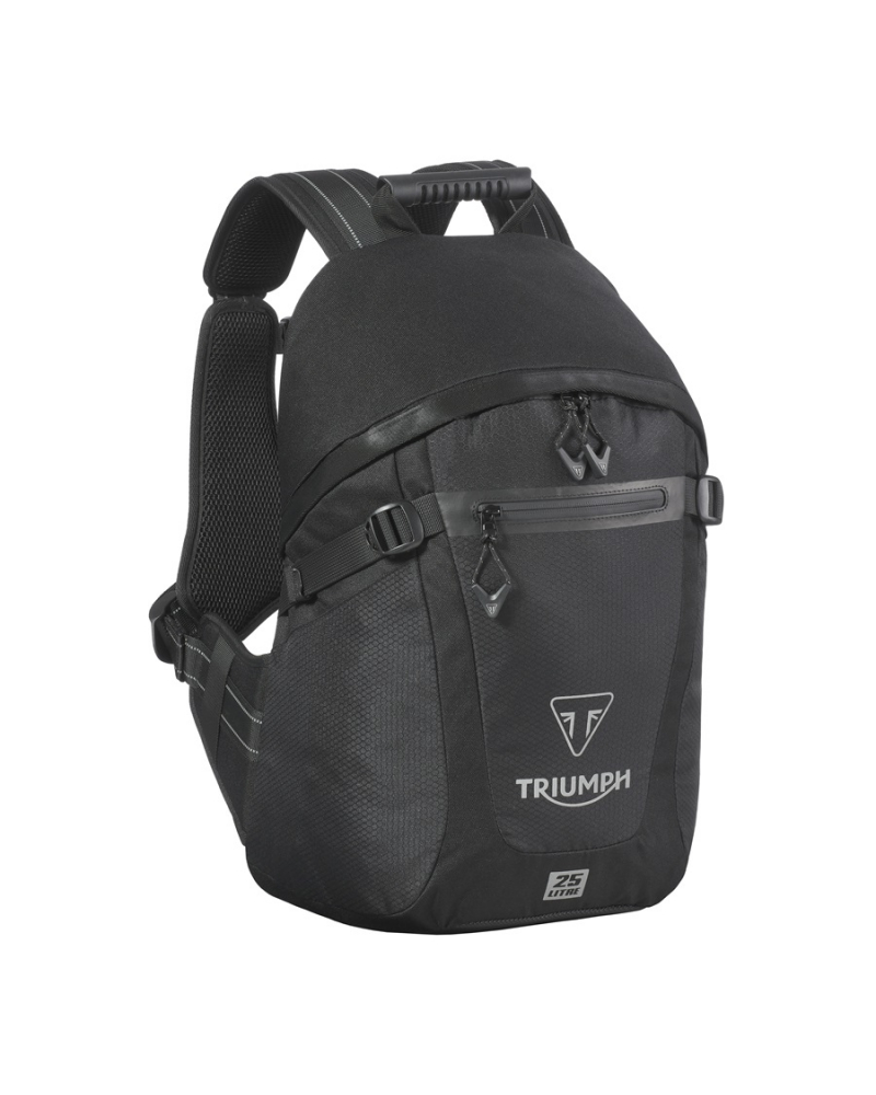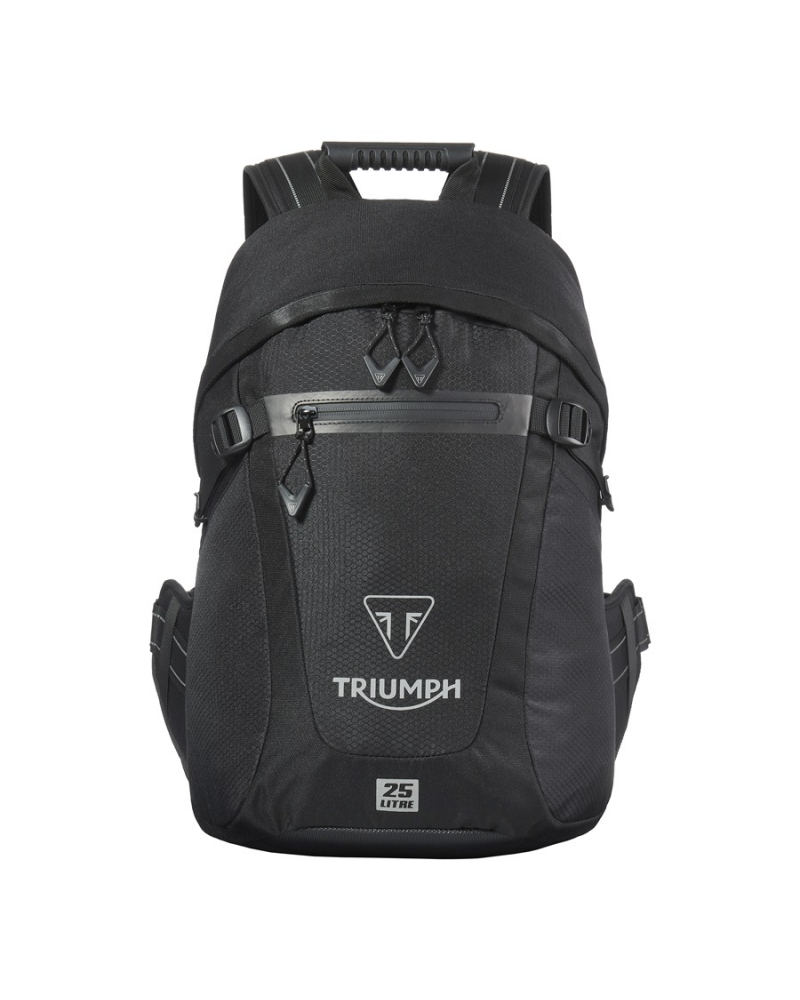 Vous pouvez compter sur le sac à dos Commuter 25 L de Triumph. Fabriqué dans un mélange de ripstop hexagonal léger et résistant et de polyester 600D, il protège vos affaires de la pluie et de l’humidité. Le sac à dos comprend un grand compartiment intérieur pour partir une nuit ou quelques jours, tandis que sa grande poche extérieure est imperméable et accessible.